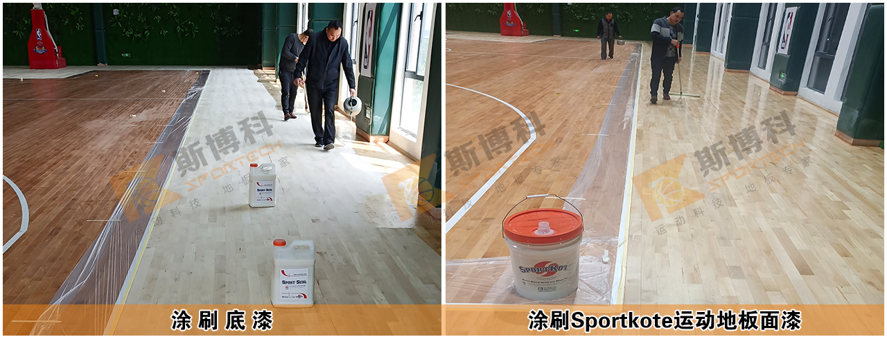 1、精心设计的球场彩漆效果及LOGO可以打造个性化的场馆,赋予地板不同的气质或传递场馆方的精神,让呆寂的地板变得鲜活有生命力。 2、优秀的地板彩漆设计,对于现场观赛或者电视转播效果具有非常大的提升作用,对提升整个地板甚至是场馆的档次有巨大作用。 3、最为根本的,地板彩漆实质上是对体育地板运动功能的改造升级,科学的彩漆方案设计可以对球场的功能区进行明显分割,相比单调的球场比赛线,更能方便球员在进行训练或比赛时精准控球和站位,提升训练和比赛水准。 |
